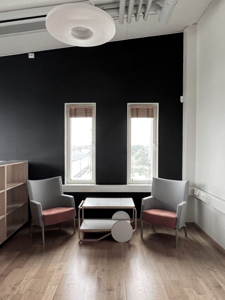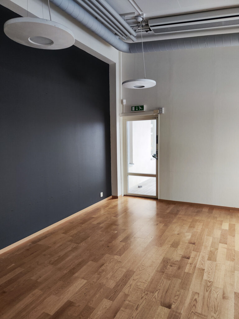 Planlösningen är öppen med ett separat rum, vilket skapar goda förutsättningar för både kreativt och strukturerat arbete.